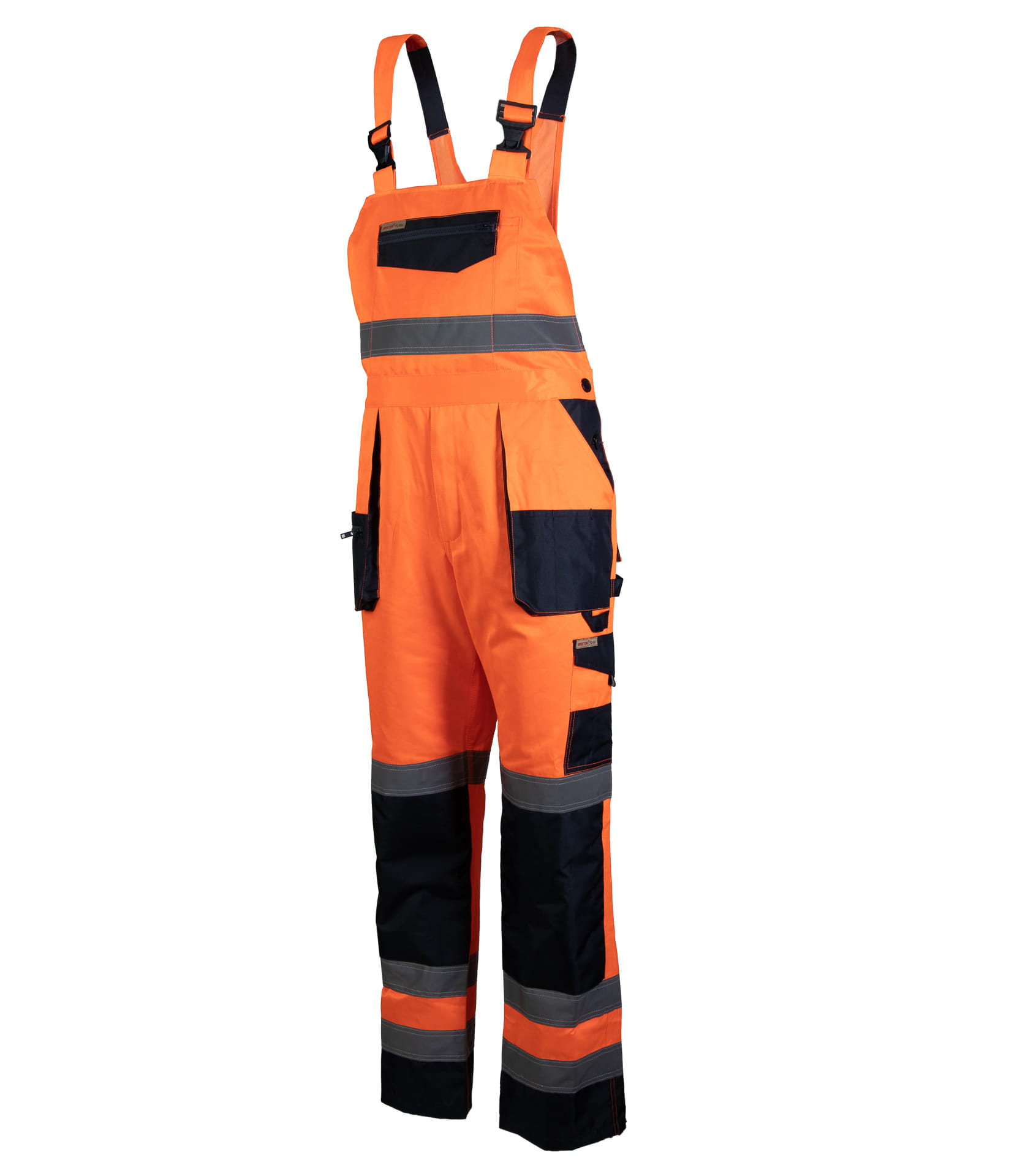 dwie kieszenie w tylnej części spodni, zapinane na rzepy, dwie kieszenie boczne, wzmocnione kieszenie boczne, wzmocnione kieszenie zapinane na rzepy, kieszeń na komórkę, kieszeń na dokumenty zapinana na zamek, kieszeń na miarkę „metrówkę”, ergonomiczna kieszeń na nakolanniki wykonana z OXFORDU, |