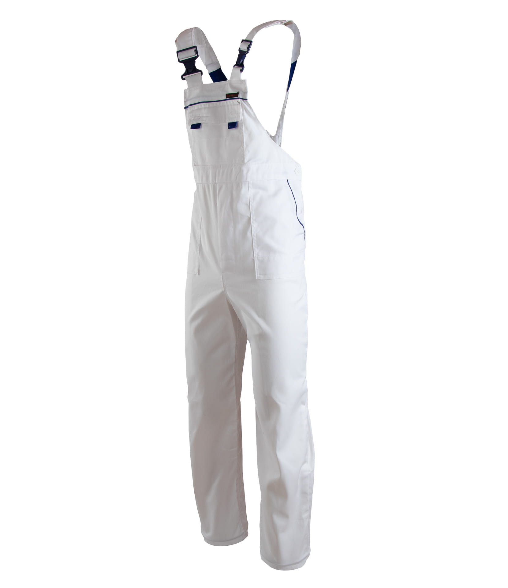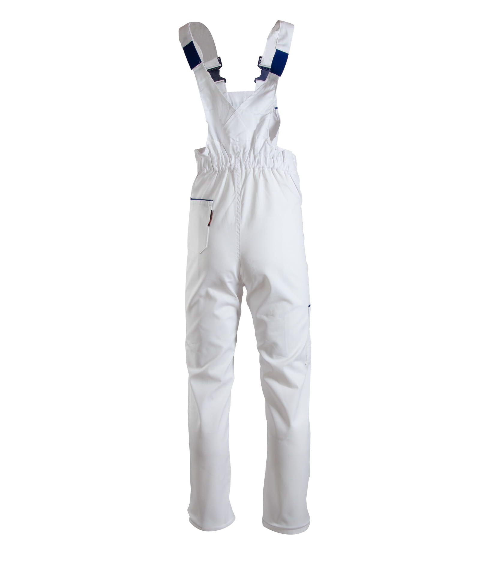lamówka kolorowa, podwójne szwy, szyte mocną nicią, wykonane z wysokiej jakości materiału, który zapewnia po wielokrotnym praniu stabilność kolorów i rozmiarów, duża ilość ryglówek w miejscach szczególnie narażonych na rozprucie, długie, szerokie, regulowane szelki,