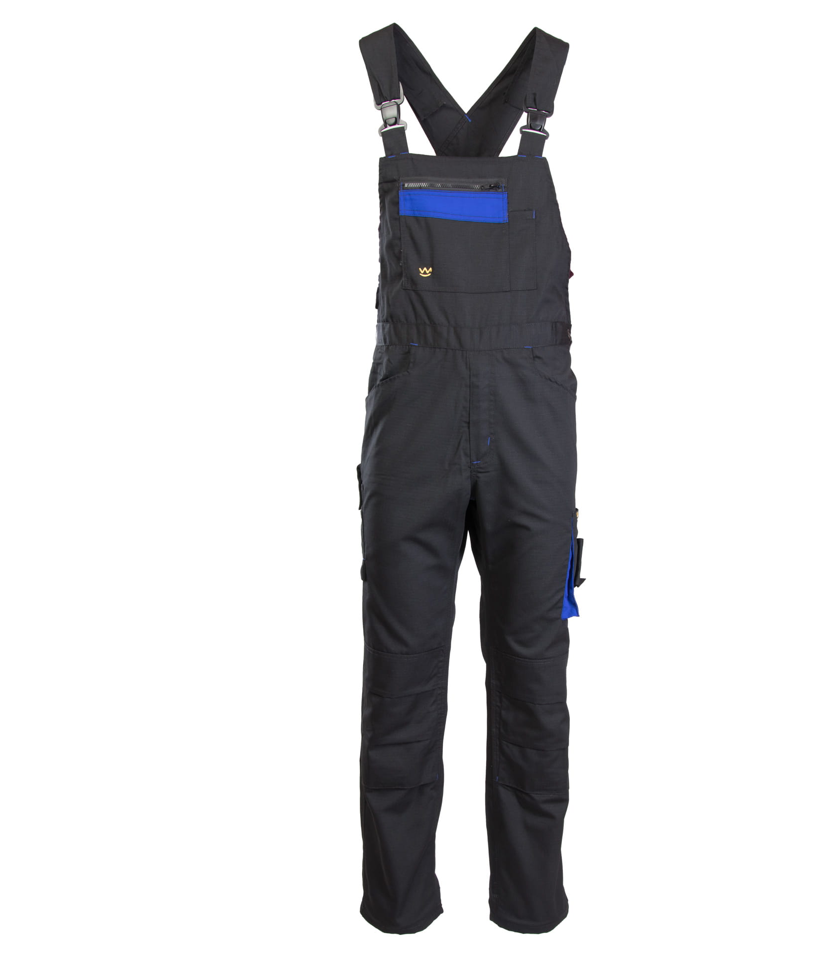 dwie kieszenie w tylnej części spodni, przestrzenne kieszenie, dwie kieszenie boczne, kieszeń na komórkę, kieszeń na długopisy, kieszeń na dokumenty, kieszeń na miarkę „metrówkę”, ergonomiczna kieszeń na nakolanniki, |
