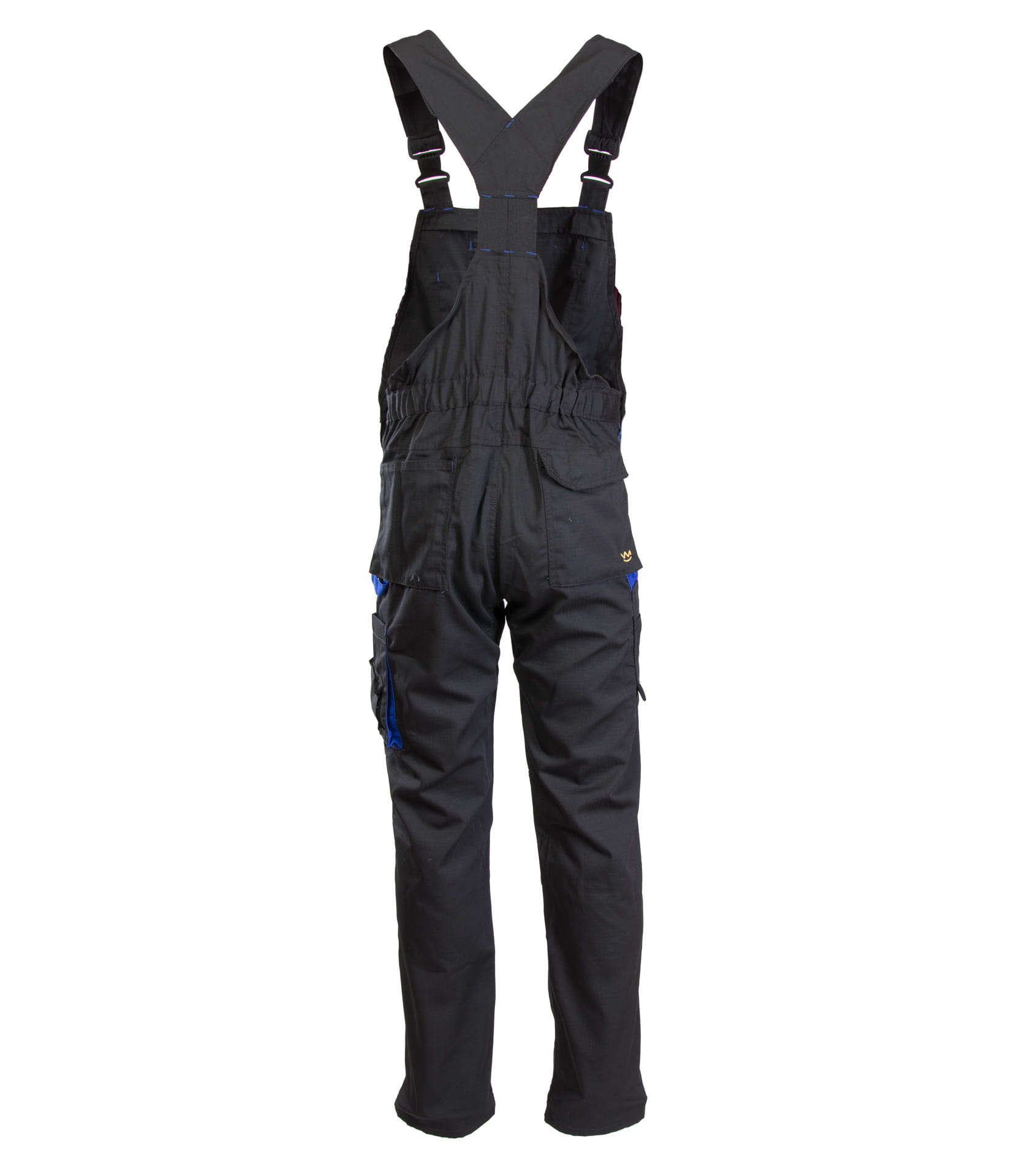 wstawki kolorystyczne, podwójne szwy, szyte mocną nicią, duża ilość ryglówek w miejscach szczególnie narażonych na rozprucie, szlufka na młotek, spodnie posiadają szlufki na pasek, |